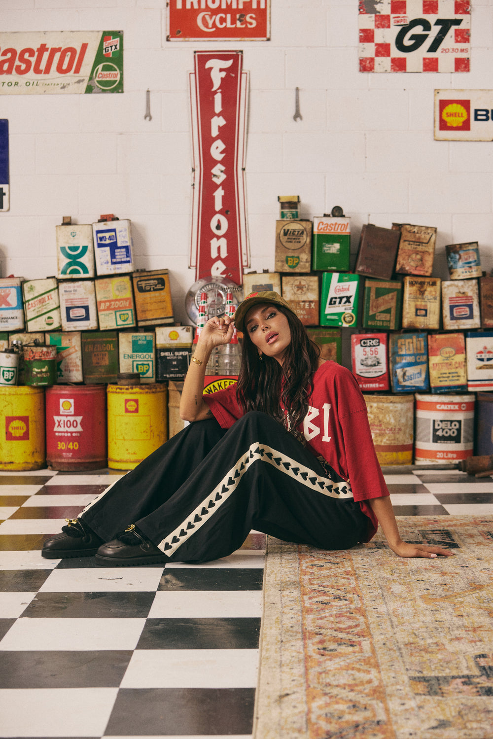 Featuring an extra wide relaxed leg, woven heart tape down side legs, side pockets, a cute Sabbi leg embroidery and thick elasticated waistband with draw string.