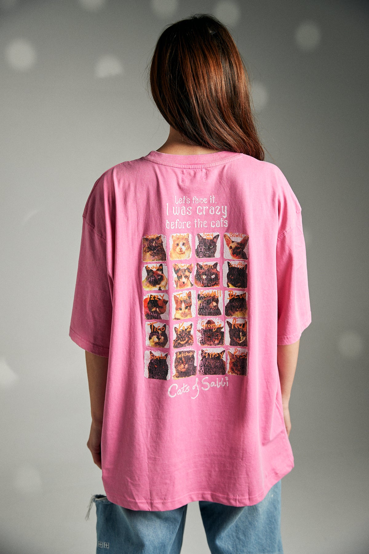 This oversized graphic tee from Sabbis Cats and Dogs Collection is for the feline-loving rebels with a lightning bolt soul. With a bold flaming cat head front and center (yes, its as wild as it sounds), electric vibes crackling across the design, and "City of Cats" screaming in hot pink, this is not your average kitty tee.