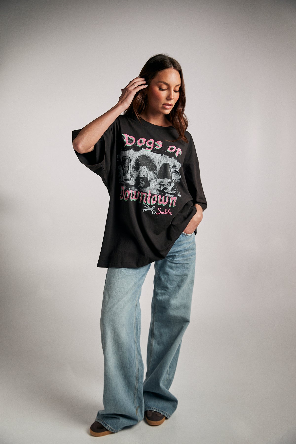 Say hello to your new off-duty essential: the Dogs of Downtown Tee a bold tribute to our four-legged legends and the cool cats who love them. Part of SABBIs City of Cats & Dogs Collection, this oversized graphic tee stars the real-life doggos of our very own SABBI customers because lets be honest, they run the show.