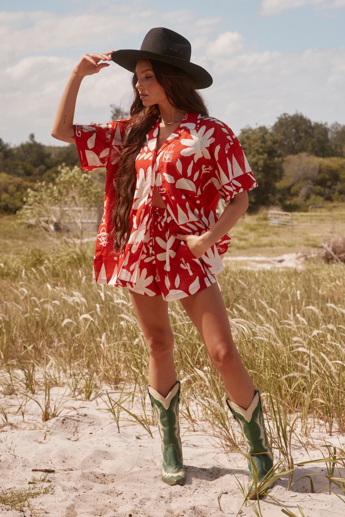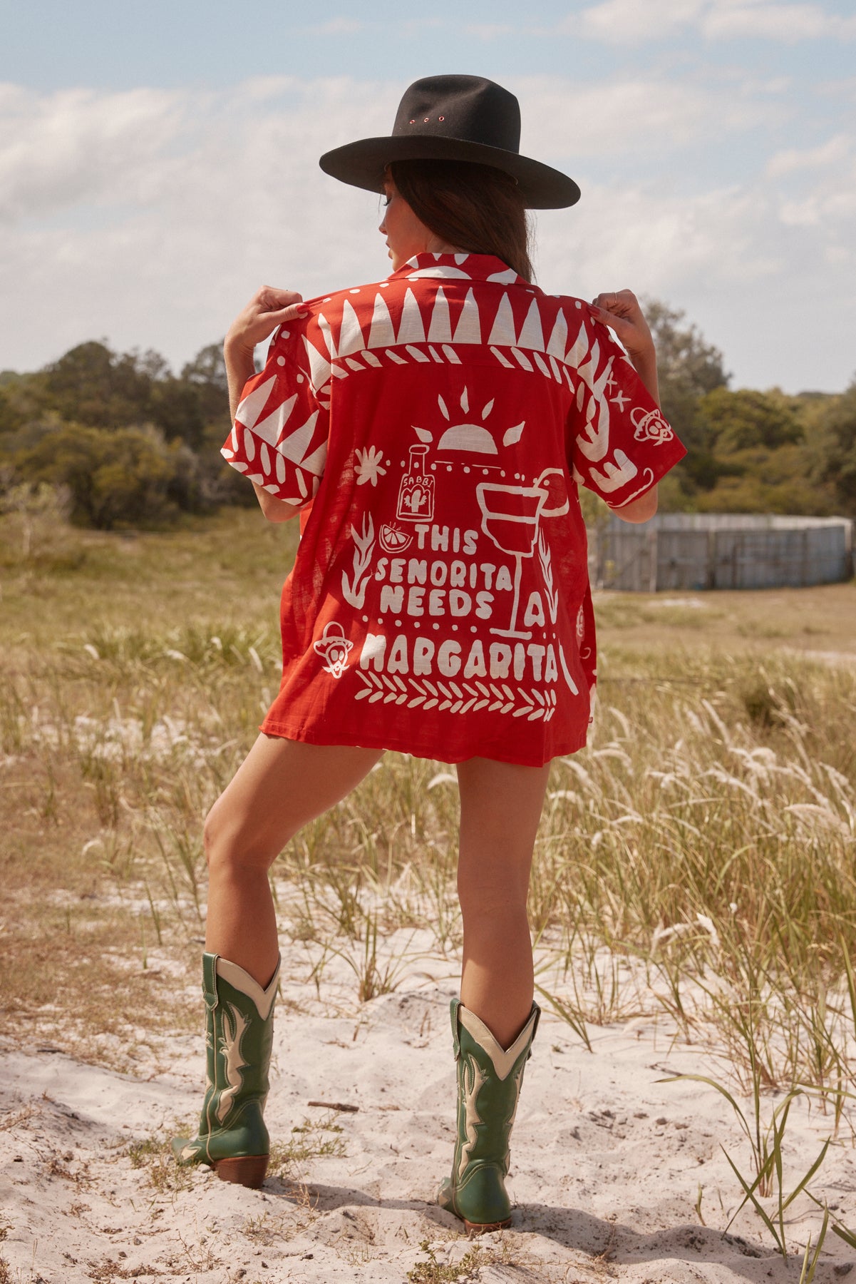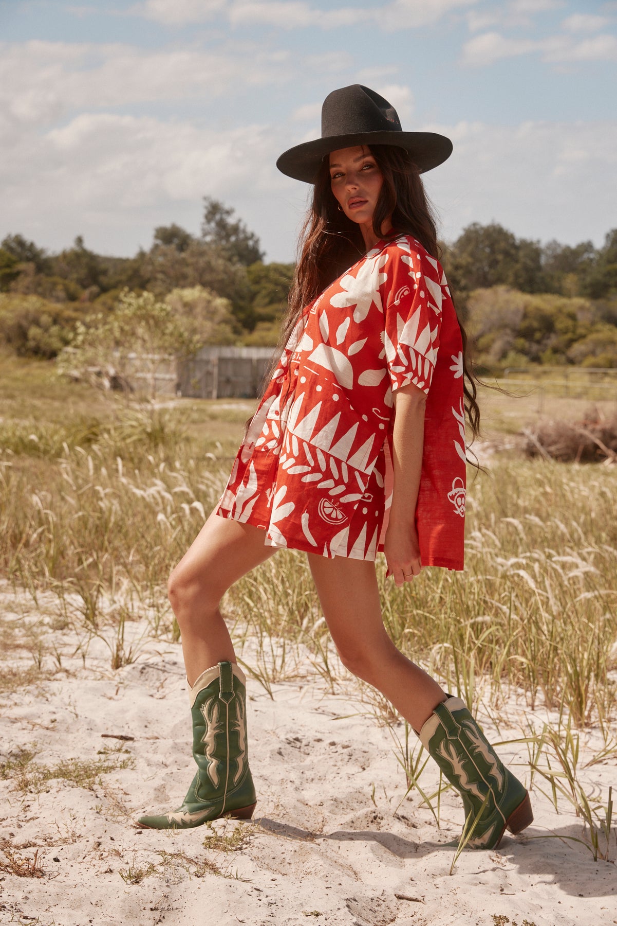 Crafted from luxurious linen, this shirt features an oversized button up fit, side splits, short sleeves with split and adorned with a beautiful quote on the back.