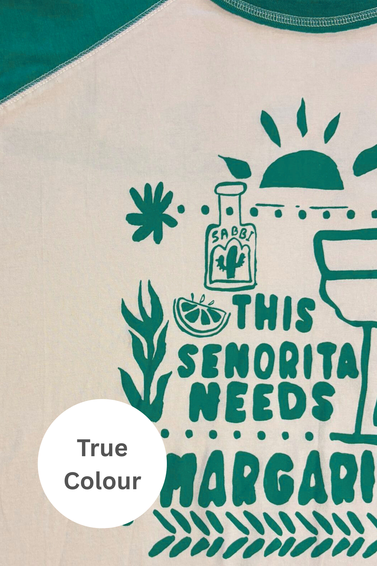 Crafted from soft, breathable cotton, its lightweight but cosy enough to lounge in all day. The contrast raglan sleeves and curved hem give it that perfectly undone, throw-on-and-go feel, while the playful margarita graphic brings the fun.
