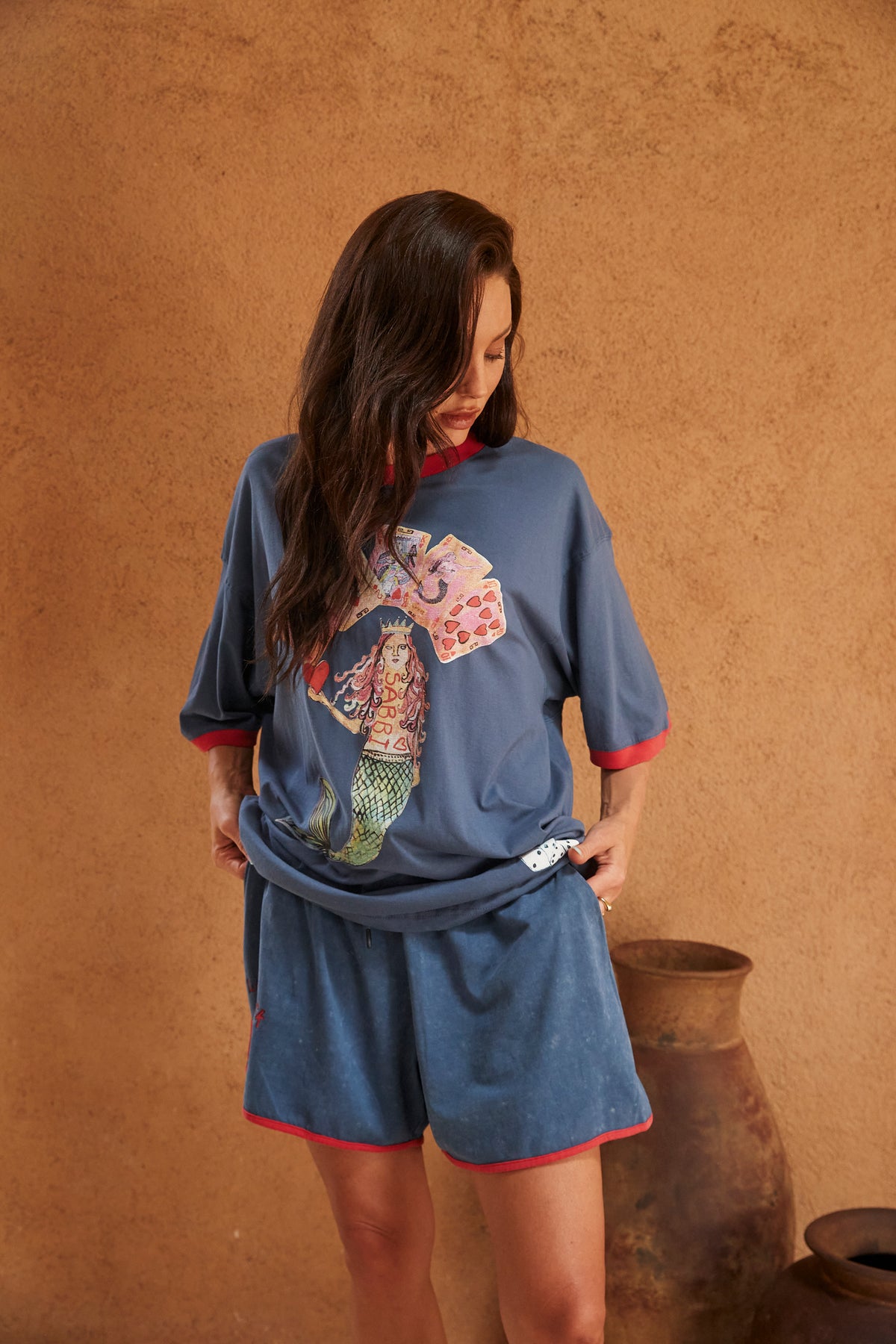 THE ROUND ROLLA SHORTS - LUCKY MERMAID NAVY/RED