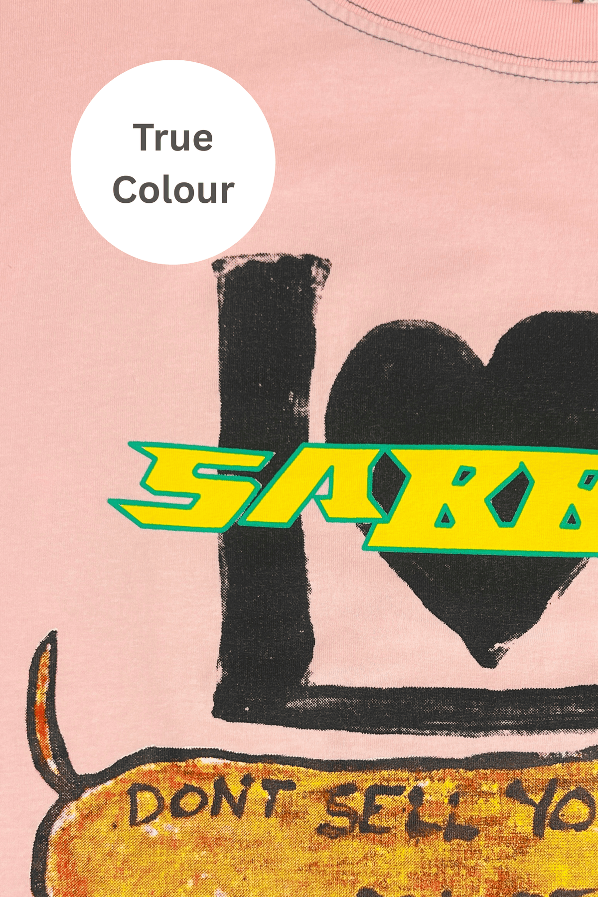 Featuring a playful sausage dog graphic paired with bold Sabbi love messaging, it brings feel-good vibes, a touch of humour and effortless everyday wearability.