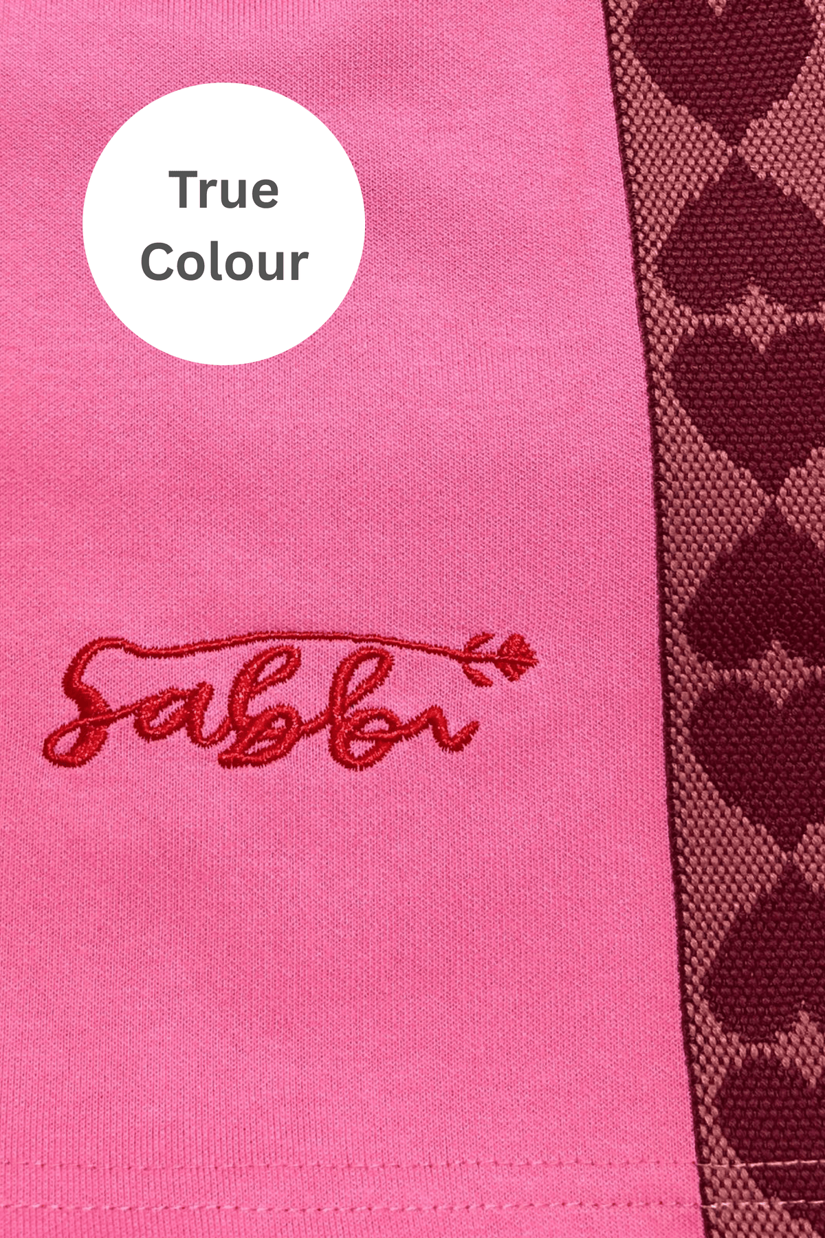Featuring an extra wide relaxed leg, woven heart tape down side legs, side pockets, a cute Sabbi leg embroidery and thick elasticated waistband with draw string.