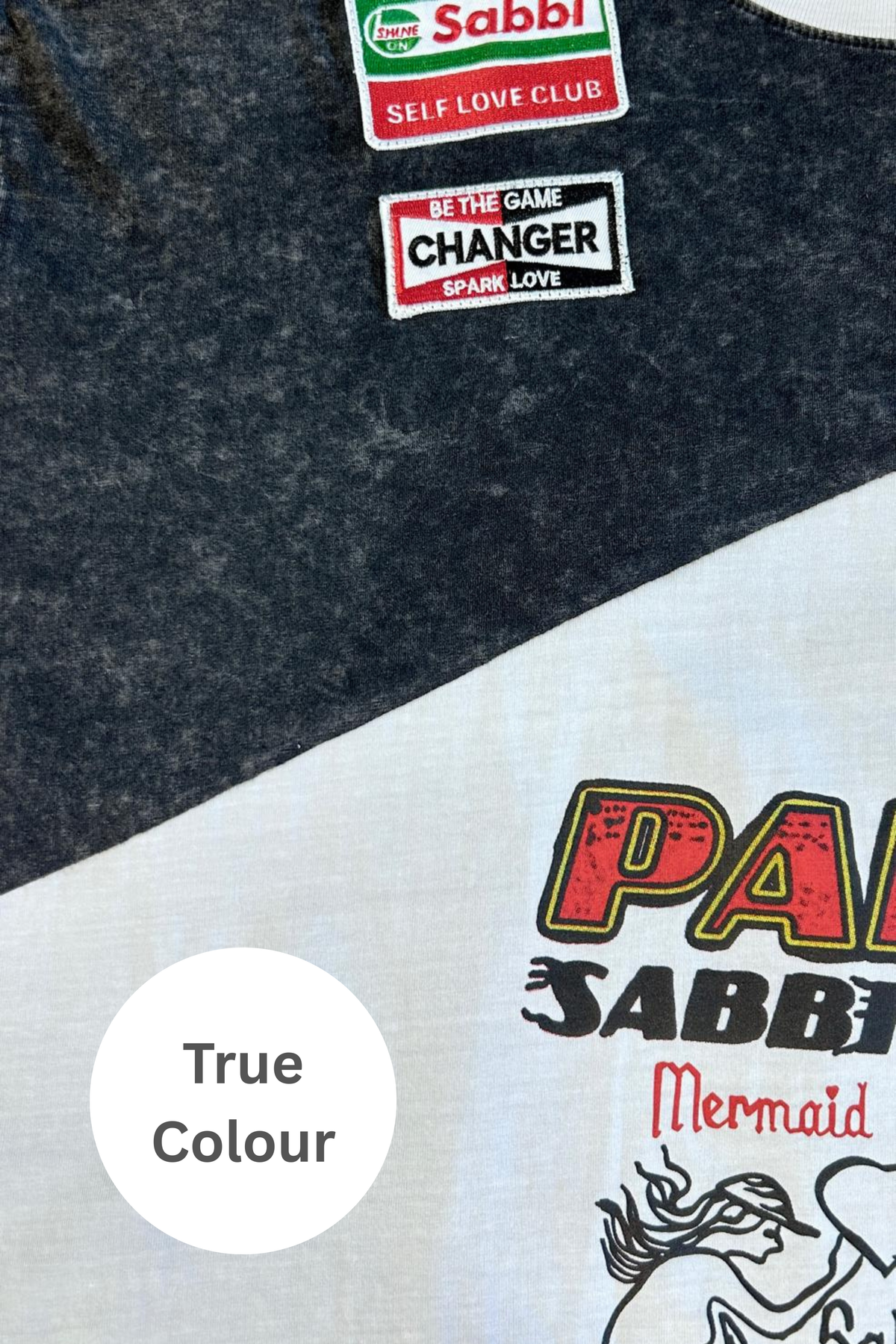 Crafted from soft, breathable cotton, it’s loose, comfy and made for all-day wear. The contrast panel detailing and statement racing graphics give it that throwback motorsport feel, while the mermaid artwork keeps things uniquely Sabbi.